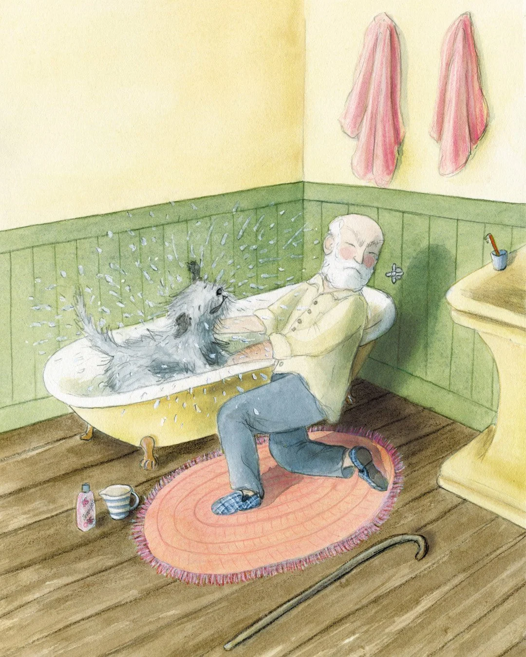 One morning, a man knocked on the door to sell something Mr Hindbottom did not need. Mr Hindbottom waved his cane, blew his nose, and slammed the door.